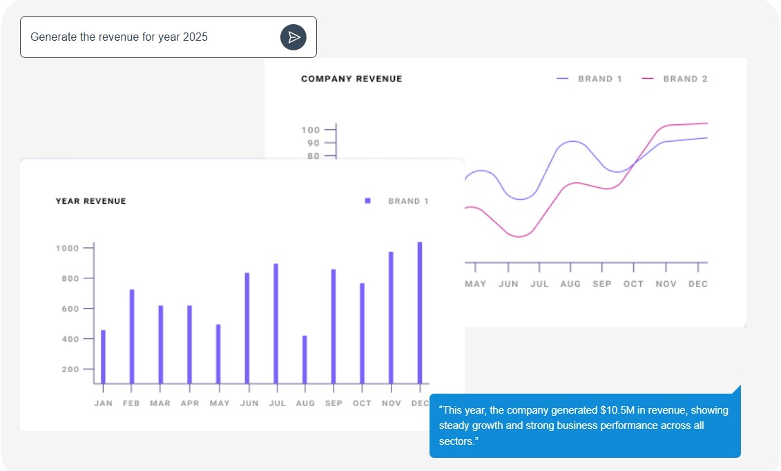 Instead of writing complex SQL queries or waiting for a data analyst, simply ask: "Show me our top 10 customers by revenue this quarter, and compare to last quarter."